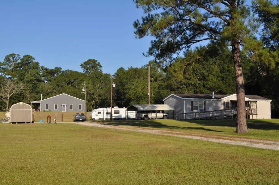 Large 2 bedroom, 2.5 bath shop house on highly elevated house pad located on over 8 beautiful acres with a large pond, inviting you to relax and enjoy the surrounding wildlife. Kitchen and one bath are not completely finished, allowing you to add your personal touch. Additional trim work needed in some rooms. Cook top, oven, and refrigerator remain without warranty. Very spacious living room and bedrooms. Each bedroom has its own full bath including free standing soaking tubs and unique vanity. Visitors have access to a separate half bath. Living room has an attractive wood burning fireplace. In addition to the shop house, there is a 3 bedroom/2 bath double wide mobile home that remains with the sale of the property. Lot size: 658x612x657x612 less 20x20 corner. MLS#183061