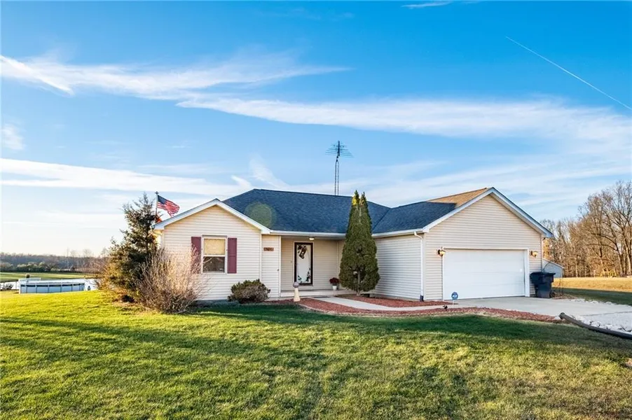 Looking for county living? You will enjoy this 3 bedroom, 2 full bath 1510 Sq ft home that has separate detached 2 car garage, 25' above ground pool, outdoor fire pit, & access to 5 acres stocked pond. Bathroom updated July 2021, new kitchen floor 2020, New HVAC and dust work in 2012. New pool liner, pump, solar cover 2021. Has 10x10 sunroom and outdoor pergola. 2 car detached garage has a workshop. Newer dishwasher, microwave & faucet. Great location that is close to both Columbus and North Vernon. You have to see to appreciate!