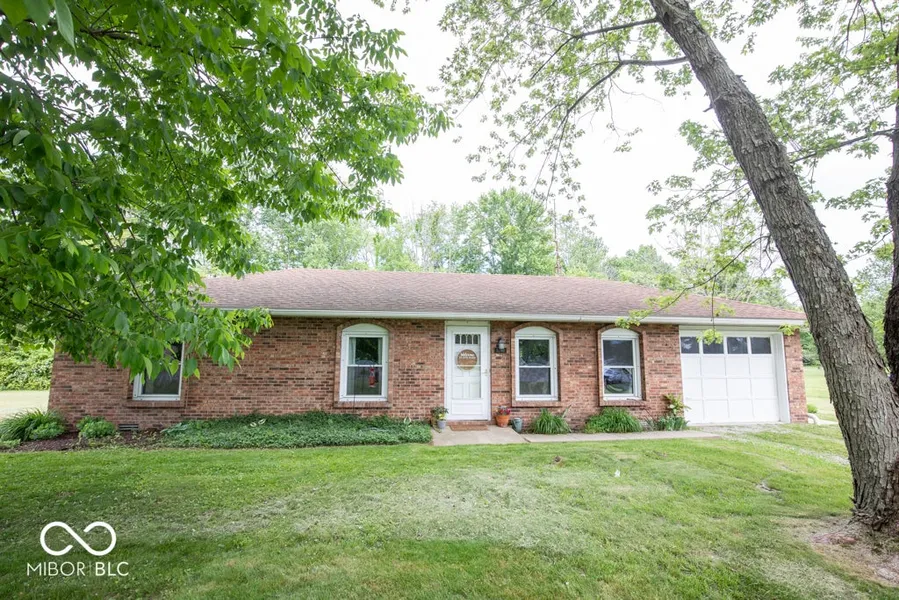 Charming Brick Home on Nearly an Acre! This well-maintained 3-bedroom, 1-bath brick home offers comfort, convenience, and charm on a spacious 0.97-acre lot. Enjoy a generous front yard, and a fully fenced backyard, perfect for pets, gardening, or outdoor entertaining. A concrete patio adds to the outdoor living space, and a storage shed (included with the property) provides added utility. Step inside to find 1,075 sq. ft. of well-designed living space (that feels larger thanks to its efficient layout). The galley kitchen is thoughtfully placed, offering multiple access points-no need to walk through the entire house to get a snack! All appliances stay, making your move easy. The home features tile flooring in the kitchen and bathroom, with carpeted bedrooms for cozy comfort. Radiant ceiling heat allows for customizable comfort in each room, and ceiling fans in the bedrooms and living room, along with a window AC unit, help keep things cool in warmer months. A 1-car attached garage adds convenience, and the peaceful location is ideally situated between North Vernon, Columbus, and Seymour-providing both a quiet setting and easy access to town amenities. Whether you're a first-time homebuyer, downsizing, or looking for a peaceful place with space to grow, this home is a must-see!