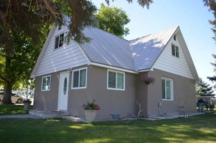4.5 +/- acres, flood irrigation with 6.75 shares of NSCC water. Many possibilities with this acreage, shop, corral, pasture, garden space and RV parking. The home has been updated with metal roof, stucco siding, newer vinyl windows, wood laminate floor. Private and peaceful, nestled in the trees. Country living with city conveniences.