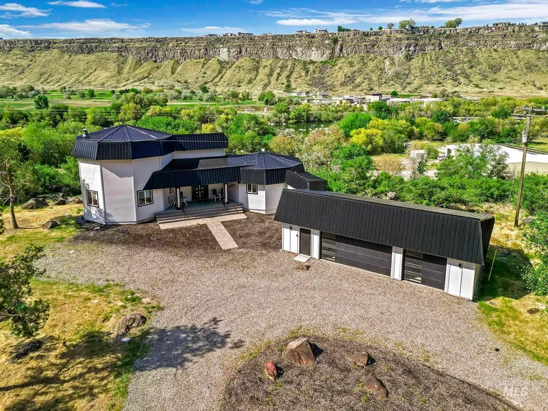 This newly remodeled mountain modern home near Blue Lakes Country Club is very unique and extraordinary. The spectacular canyon views are unsurpassed with 5 waterfalls in view. The Perrine Bridge is perfectly framed in the Master Bedroom and 2 large deck areas overlooking the Snake River Canyon below. The home is conveniently located minutes away from Twin Falls shopping and recreational opportunities. You will enjoy a fully equipped modern kitchen, living and dining area with large windows to capture panoramic canyon views. A large den and Theatre room on the lower level affords privacy from the upper 2 levels. Large decks with patio furniture and gas grill overlooking the canyon. Tons of storage and a large 3 car garage with ample parking areas for boat or camper. If you are looking for luxury, privacy, canyon views, and a great upscale home close to golfing, bike trails and close by shopping this is it!