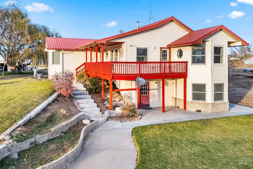 Experience the perfect blend of comfort and opportunity with this impressive 5-acre home, built in 1996 and featuring a walk-out daylight basement. The main level boasts 3 spacious bedrooms and 2 bathrooms, complemented by a generous living area that embraces an open-concept design, highlighted by a warm and inviting woodstove. The basement is equally striking, featuring 2 additional bedrooms, a large family area, and a small kitchen, providing ample space for entertaining or accommodating guests. This property isn't just a home; it's a lifestyle. The acreage is ideal for livestock, and there's already a foundation in place for a potential second dwelling, offering you endless possibilities. Enjoy efficient heating and cooling with a forced air heat pump and air conditioning. Strategically located south of Jerome with easy interstate access, this home is bathed in natural light and sits prominently on a hill, delivering breathtaking views of the valley. Don't miss the chance to claim this remarkable property