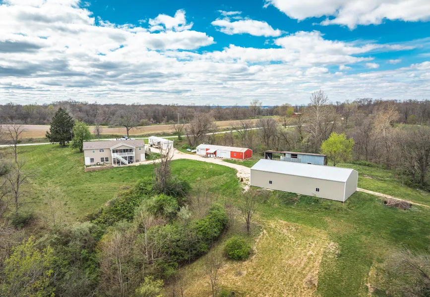 Welcome to your very own dream retreat situated in the picturesque landscape of Fieldon, IL. This charming 3 bedroom, 2 bath home sets on a sprawling 80 +/- acre farm & consists of 2 parcels. This property offers the perfect blend of modern comforts & rural relaxation. Step inside the main house, and you'll discover the spacious living room, expansive kitchen, & separate dining room. Additional features include a main floor master suite, tranquil covered deck, & concrete patio. The unfinished, poured concrete, walk out basement is plumbed for a second kitchen & another bathroom. The lower level also boasts 9 ceilings & a 200 amp electric box. The 40x80 metal pole building was built in 2013 and comes complete with 14 ft. ceilings. The second 20x70 barn houses the wood burning boiler. If that wasn't enough, there is an additional 2 bedroom, 2 bathroom trailer located on the property that can be used as a second residence OR a hunting cabin. Call today to see this one for yourself! Additional acreage is available.