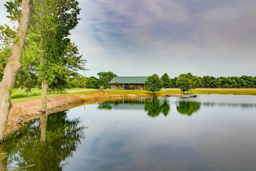 This is the Dream Property you have been looking for!!! It features 7+/- acres with a 2.5 acre lake stocked full of mature fish. Beautiful view all around, plenty of wildlife and nature and a very private setting. This home is a 2011 Ragland 50x64 pole building with 840+/- sq ft. of living space, 1 bedroom, 1 bath, laundry, full eat in kitchen and living room. The building has a 62x12 covered concrete porch set up for dog kennels with interior dog boxes, a center 14 ft. overhead door for a 42' RV with hook ups(water, electric, septic), two 10 ft. over head doors, tons of upstairs storage space and a work shop. The acreage has potential to be farmed This is one meticulously maintained property.