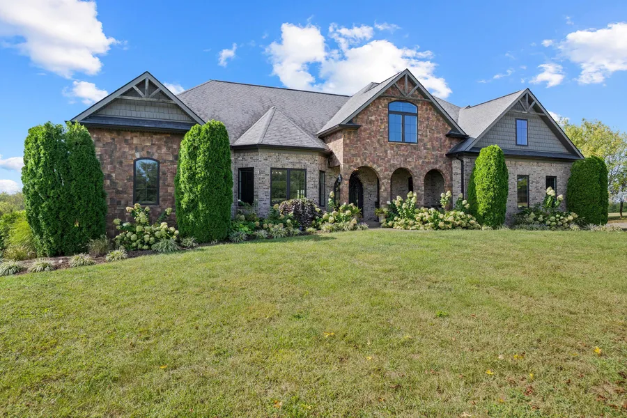**OPEN HOUSE Sunday, October 13th, 1-4pm** If ever there were a property that must be seen in person to be believed, this is it. Built in 2015 and situated on a beautiful five acre lot in the exclusive Cave Run Estates community, this spellbinding custom home wows at every turn throughout its 6500+ square feet. No expense was spared in its construction, yet it overflows with an approachable luxury that makes everyone who enters feel right at home. Step through the impressive iron front doors and you'll immediately notice the hand-scraped hardwood flooring that flows throughout the main level. To the left- a bright and airy home office through French doors. In front of you are unique architectural arches inviting you into the heart of the home-- the open living room, stunning chef's kitchen, and sunlit eat-in dining room. The living room features volume ceilings adorned with solid wood beams, as well as a stacked stone linear fireplace surrounded by floating shelves and custom cabinetry. The kitchen is dreamy from top to bottom, highlighted by a waterfall island, an abundance of custom cabinet storage, a walk-in pantry, and a top-of-the-line Bertazzoni gas range and hood. The primary suite is truly a spa-like retreat you'll never want to leave! The spacious bedroom boasts a beautiful tray ceiling, coffee bar, and access to the covered back deck. Spend mornings getting ready in the luxurious bathroom with freestanding soaker tub and a shower that features a rain head and three wall jets. And you'll love the convenience of your own private laundry entry, right next to the huge walk-in closet. A guest half bath and mudroom area complete the first floor layout. Head upstairs and you'll find three spacious bedrooms, two connected by a jack-and-jill bath. There are also two hidden bonus areas for the kids to enjoy. A third full bathroom is perfect for guests, and a second laundry room on this floor means you'll never have to carry clothes downstairs! The expansive finished basement is made for entertainment and enjoyment, centered around a fully functioning wet bar/kitchen built from local barn wood and stone. You'll also find a designated workout room, a large office/flex space, a fifth bedroom with egress window, and a stylishly appointed bathroom with jetted tub and separate tiled shower. Don't miss the storm shelter area for peace of mind! Just when you thought the house couldn't get any more desirable, there's a massive covered deck awaiting family cookouts and s'mores on cool fall evenings. It overlooks a farm-fenced back yard (with invisible fence around the whole house for the dogs), which is easy to mow thanks to the basement garage for your zero-turn or tractor. There are SO many more amenities too numerous to list (central vac, wood Levelor blinds, etc), so you'll just have to come see them for yourself. Better hurry-- properties this special don't last long. Schedule a private tour today!