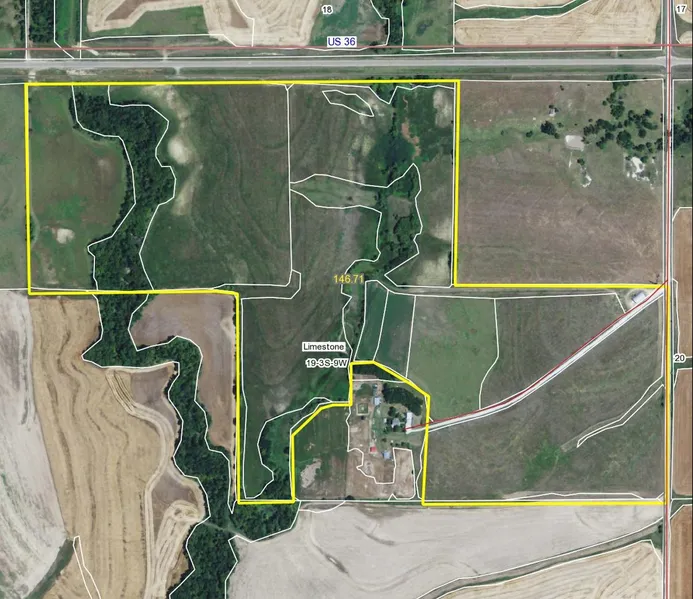 Located in Limestone Township (19-3S-9W). This is a diverse tract of land that combines excellent cultivated land, CRP, timber and hay meadows. The property is easily accessible from US Highway 36 and 80 Road.