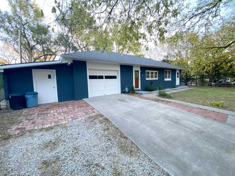 Open concept living with a wood burning stove, central heat/AC and laundry room.