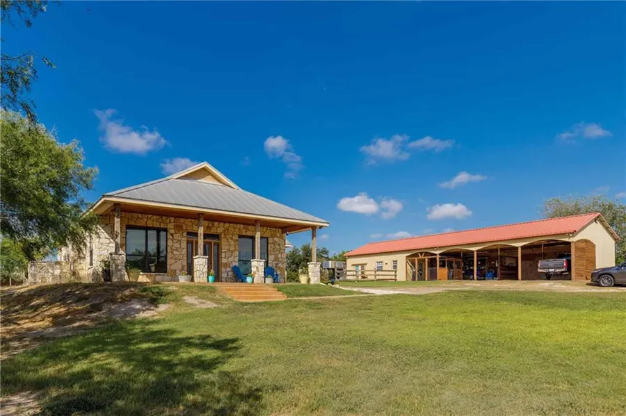 Holy Cow! Over 7 acres with a gorgeous open concept main house, guest house, barns, tack room, four pastures, fenced and cross fenced, sitting high on the hill with lovely views AND the lake just down the street? Heck, yes! The main house has a chef's kitchen with gas cook top, granite counters, stained concrete floors throughout, beautiful beams, custom wood doors and loads of room to entertain. Your family and guests can have their own separate quarters in the guest house with bedroom, bathroom, separate living area, kitchenette and even it's own patio! Horses and cows will have plenty of room to roam here. All situated in Barbon Harbor Estates and in the desirable Orange Grove school district, this place is truly a gem and you can call it home! Square footage combines the main house that is 2 bed/2 bath and guest quarters that is 1 bed/1 bath. Acreage is already subdivided, so you could sell a few too. Special Financing Incentives available on this property from SIRVA Mortgage. For more information call Kathy Head 361.813.8596
