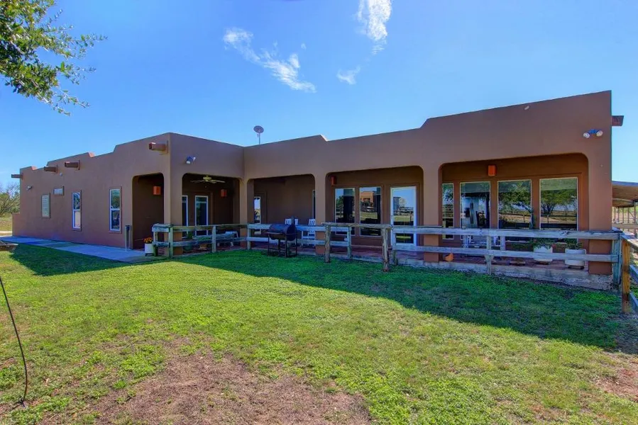 Santa Fe Style Fabulous Unique Home! Calling all COUNTRY LOVERS! You've found it....Look no further! True COUNTRY LIVING on this 24 ACRES RANCH! Bring horses! Bring anything your heart desires! You won't believe what all this property has to offer...Immaculate 3 bedroom, 3 bath, 2 oversize car garage. Large 12 horse stall barn w tack room attached to home. The home features Saltillo tile through-out the home, 2 fireplaces one is double side to living & master suite. Open Kitchen & dining area w lots of windows. Kitchen is equipped w microwave, stove, dishwasher, pantry, and breakfast bar. Spacious master suite w OVERSIZE walk in closet & master bath has separate slate tile shower, jet tub, his & her sinks, vanity. Fully fenced and cross-fenced, 2 outdoor arenas. Such peace and tranquility...you'll find it hard to leave! All kinds of birds. Orange Grove schools! 54 ACRES also for sale nex...