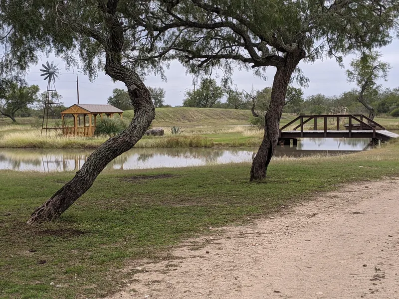 Water: Four Water Wells and Four Tanks keep the house and wildlife fed. Three of the water wells are submersible and one is solar powered. The Main Water Feature closest to the house is stocked with fish. A Veranda sits near the water's edge for spectating and observing the gorgeous South Texas Sunrises and Sunsets.