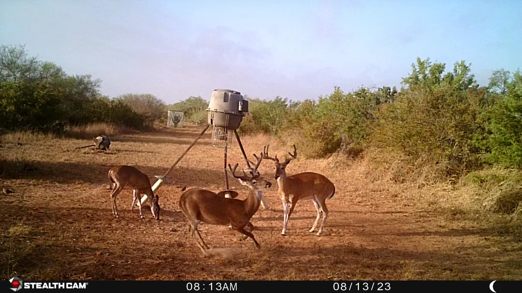 This ranch has great hunting for white-tailed deer, dove, turkey, quail, hogs and varmints. There are several open areas of the ranch which are excellent for quail hunting. Dove hunting has been great over the years.