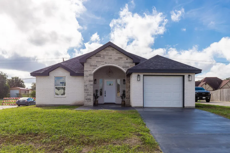 Modern farmhouse masterpiece filled with "wow factor" features at every turn from the generous front porch to the attached garage is ready for you now! Attention to detail is obvious upon entry in this newly constructed home that boasts 4 bedrooms, 2 bathrooms, office, and separate laundry room. Along with sophisticated wooden wall accents, you will find quartz countertops throughout and elegant hardware in kitchen, baths and laundry. Beautiful consistent flooring, designer lighting and gorgeous open shelving add to the touch light mirrors in both bathrooms as well as the wine/beverage fridge in the kitchen that also includes stainless apron sink and beautiful central kitchen island. Delight in the well appointed primary bedroom with attached bath that includes soaking tub, separate shower and walk in closet with custom built in storage. All secondary bedrooms are amply spaced with deep closets. A calming, neutral color palate throughout makes the home a decorator's dream! CALL NOW! For more information call: KATHY HEAD 361.-815.8596