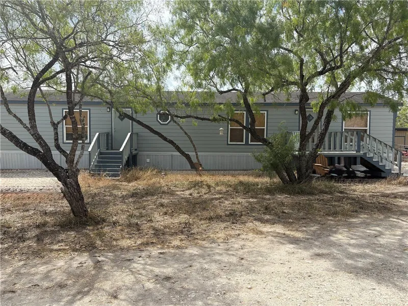 Super cute manufactured home on 2 acres in Orange Grove! All fenced and cleared, shaded with great trees, carport with power, detached storage shed with power, RV parking, 2 bedrooms, 2 bathrooms, tiled walk in shower in primary bedroom with double doors, feux wood blinds throughout, great closet space, vaulted ceiling, crown molding, updated bathrooms, covered gazebo with power, no restrictions or HOA, right on the edge of town, painted kitchen cabinets, updated vinyl flooring throughout, laundry room, and more. Great for animals!