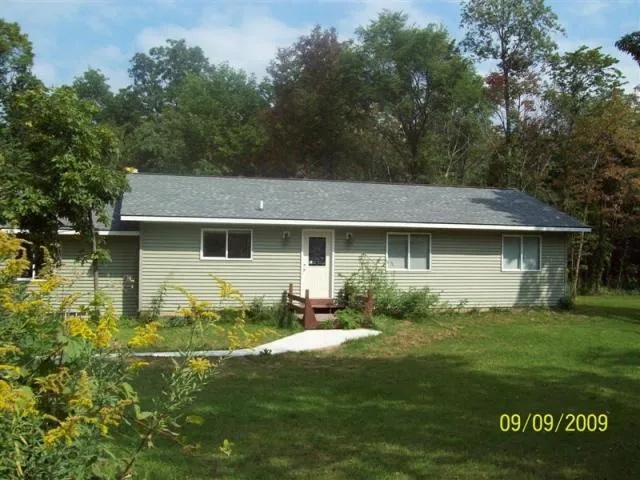 This is a newly built ranch style home located on 2.12 wooded acres. There are 3 bedrooms and 2 full baths. There is ceramic tile flooring in the kitchen and new carpet throughout. The kitchen has beautiful new cabinetry. There is a ceramic tile surround wood burning fireplace in the living room adds extra ambiance to a comfortable setting. It has a 2 stall attached garage with an automatic opener. There is a wood deck located off the living room which has two large glass screen doors leading out to it and a walk out basement located directly below it. The washer and dryer hookups are located on the main floor. There is a 30 year roof, made of architectural shingles.