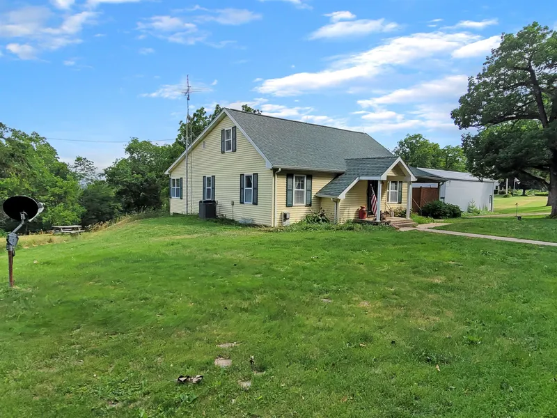 Charming country retreat sited on 1.65 acres featuring gorgeous seasonal treed views of the valley below, huge 50" x 22' pole building, additional shed for storage/workshop/garden, two car tandem under garage, and a great location halfway between Galena and Scales Mound offering convenience to either. Airy main level houses generous kitchen with loads of cherry cabinetry, large eat-at counter, access to huge, covered deck, and an additional breakfast nook with work desk and laundry area, light filled living room with room to relax and lots of windows to take in the views, large formal dining room with wood floors and ample space for guests, main level master bedroom with ceiling fan, wood floors, and access to bathroom, and additional cozy guest bedroom. Expansive upper-level bedroom spans the length of the house and has room for sitting area and multiple closets. Head to the lower level to find a spacious family room featuring full size bar and sink plus a warm and inviting gas stove with brick hearth and surround, nicely appointed full bathroom, utility room, and access to tandem garage. Beautiful open yard space offers plenty of room to enjoy the outdoors and take in the natural scenery. Pole building has doors in front and rear, and both pole building and garden shed have electric. Newer roofing (2019) and new well (2021). Radon mitigation system in place. Close proximity to Galena Cellars Vineyard, and just outside The Galena Territory. A great location and exceptional package combining rural beauty, function, and style. Scales Mound School District. Current taxes reflect multiple exemptions.