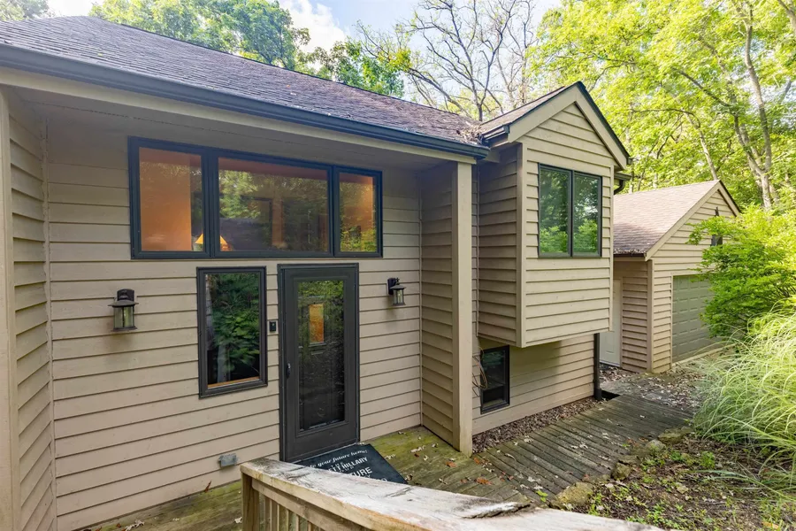 Tucked away on 2.59 wooded acres, this secluded retreat offers privacy and comfort in a beautiful natural setting. The home features three bedrooms and two and a half baths, with both full baths boasting whirlpool tubs and separate showers. A cozy gas log fireplace anchors the living room, while a main-level laundry adds convenience. Enjoy the outdoors year-round with a charming three-season porch accented by wood ceilings, multiple decks including a hot tub, and a screened porch overlooking the peaceful backyard. A detached two-car garage provides ample storage and parking. Furnishings could be negotiated on a separate bill of sale. This property is ready for you to move in and start enjoying! Property subject to GTA Documentation Fee.