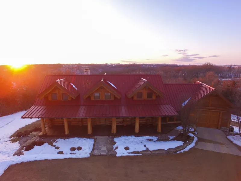 Welcome to Marion Ridge, a truly one-of-a-kind property just outside of Galena. This home is a piece of art situated on wooded acres nestled on top of a hill. This luxury western red cedar log home was handcrafted by the world-renowned Pioneer Log Homes out of British Columbia. A private gated entrance gives way to a driveway lighted along its entire length. As you round the final turn, you see this amazing home sitting on the hillside. A large porch off the front of the home invites you into the home where you are greeted with a spacious foyer and distinctive tree feature. The entryway leads into the family room with vaulted ceilings, floor-to-ceiling windows and a beautiful brick double-sided fireplace. Open flow from the family room into the kitchen where you find a large kitchen island, Hartland retro appliances and an eat-in dining area. One of two master suites is located on the main floor. This is a large master bedroom with a coffee bar, large closet, double head walk-in shower, and two custom log vanities. Every room on the main floor has a sliding door out to the oversized back deck. Upstairs is a good sized loft or office area. A second master suite features French doors leading out to a private balcony. This second master has all the amenities that the main floor master has to offer. Two identical bunk rooms also reside upstairs and share a full bathroom. The lower level with exposed walkout creates so much entertaining space. You will find a pool room with a full bar, a double-sided fireplace, and an additional living room, as well as another large bedroom and bathroom. The sauna can be found in the lower level as well as a wine cellar. A huge mudroom is located off the rear of the home with 5 separate storage lockers for owners and guests. There is an entrance from the lower level garage into the mudroom. The main level heated garage boasts unique doors that open on the side creating a very cool effect. An amazing screened-in outdoor kitchen with a TV and a huge fire pit is surrounded by boulders. A concrete patio off the rear of the home leads down to the fire pit. Amazing sunsets can be viewed from every level. Lots of furniture will convey with the property. Please ask for an exclusion list. The current owner leases 350 acres across the street for recreation and hunting. That tract provides prime Midwest whitetail hunting, turkey hunting, fishing on the Galena River, camping, kayaking. Lease is not included in the price. Call the listing agent today to set up your private showing of this beautiful home.