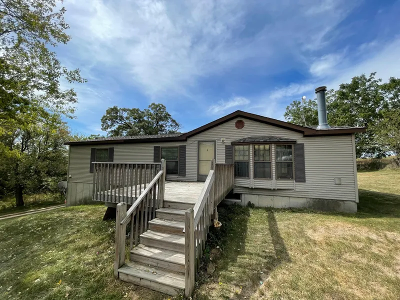Sitting back nice and private on a dead-end road, this property has a lot to offer. A modular home on is on a concrete foundation. Upon entering, the home has a nice open flow from the living room into the dining area and kitchen. The living room boasts a gas fireplace and a new sliding door leads out onto the new deck. The deck is nice and wide and gives some nice views of the property. The laundry room is on the main floor off of the kitchen. There is a shared full bathroom off of the hallway and the large master bedroom has a master bathroom and walk-in closet. An unfinished lower level has high ceilings and a 1-car garage overhead door. Going outside, the lean-to building measures approximately 26x52, a livestock barn is 30x60 +\-, and there are a couple of old limestone structures. This is a square property with timber and room for food plots and trails.