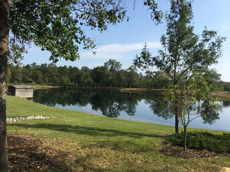 Just over the hill is an open food plot. The property also touches McCoy Road on the side. As you travel you will come upon a large rolling hill pasture. This pasture has a tower and clay thrower. From here you also have a shooting range. Continue on to pass through the wildlife sanctuary on the way to the Bird field with lines and plots. Circling on around you will have planted pines and the property follows the road down to the back side of the property to a fruit orchard. A little further down you reach the backside of the pond with a variety of oaks and trees for wildlife.