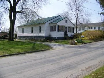 Hard to find, cute, single family home, block and frame with poured cement basement and 2 car detached carport. Central air, electric F/A heat. 2 BR, 1 Bath. Wood Front and back porch. Extra large yard, solidly built brick outbuilding. Lots of closets in this bright airy home.