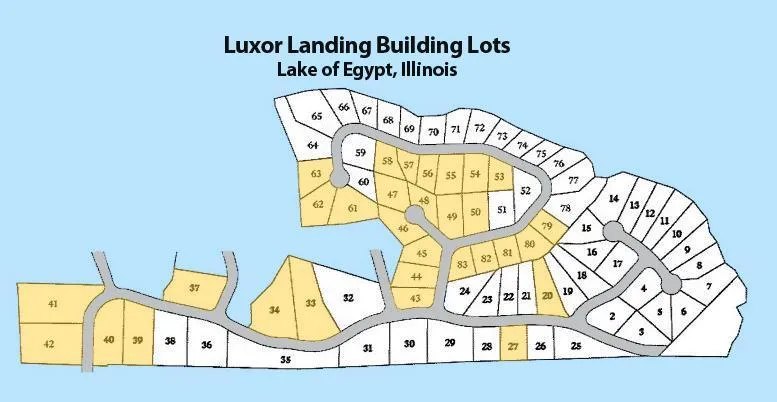 Auction Starts: 9:00 AM 8/22/2014 Auction Ends: 4:30 PM 8/27/2014 Nominal Opening Bid: $500. Land. Approx .64ac lot. HOA: Luxor Landing Home Owners Association. HOA fees $132/Y. . One of 31 Home lots at Lake of Egypt, IL - Phase 1 & 2 of Luxor Landing - Buy One, Some or All . Streets and utilities are in - lots are ready to build . Community pool, clubhouse and leased slips . All with insurable title . 5% Buyer's Premium ($250 minimum) for each lot Note: A Buyer's Premium (Buyer's Fee in WI) will apply for this property. Please see Terms of Sale for details. Broker Licenses: IL Daniel S. Nelson, Managing Broker RE LIC 471.016793; Williams & Williams AUC LIC 444000361