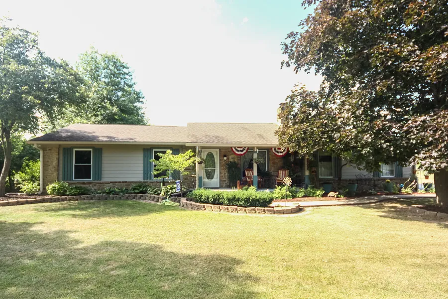 Hard to find large 4 bedroom 2 bath ranch on 6.7 acres in Center Grove. Vaulted ceilings in Great rm & Master bdrm, built-in bookcase in Den, Enclosed Sunroom, 2 Stone Wood Burning Fireplaces, Attached oversized 2 car garage, Plus many out buildings: Detached 2nd garage (24x30), Workshop (16x24) w/lights, wood burning stove, cabinets & full Loft area for storage, Pole Barn (24x32) w/lights & water great for horses/cattle & Storage Barn/Covered BBQ area (8x8). Lrg Patio (28x22) w/Gazebo, Beautiful landscaping w/fruit trees & grape vines. Back 5(+/-) acres are fenced & great for horses/cattle/farming or development. Updates: Newer Bee Windows, HVAC, Roof, 6"gutters, Driveway, Front Porch, Stamped Patio & Master Bathroom, Water Heater & more.