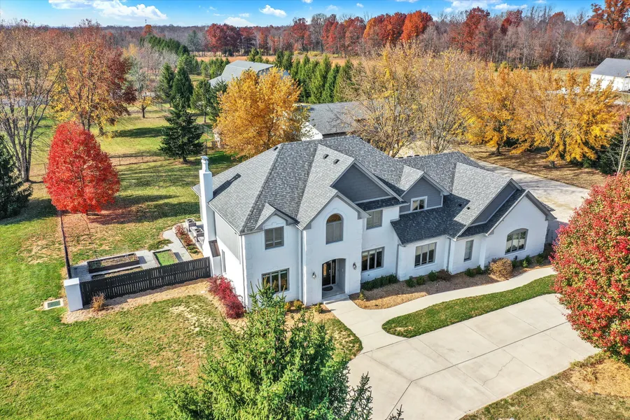 CG Estate Home w/ 10+ acres and 3 pole barns, pond, range, hobby barn and climate controlled dog house. This well maintained 5 bedroom/ 7 bath home offers many features. The top floor features the owner suite + 3 bedrooms, 3 full baths, laundry room and rec. room. Main level features owner suite, laundry room, large EIK, dining and office. The lower level offers a theater area, bar, bathroom, wine cellar and safe room. All barns have slabs and electrical. The middle barn is temperature controlled, with an epoxy floor. The rear barn has bath and the upper level is framed and roughed for another living area. The pond features 2 fountains and a pavilion for entertaining. Enjoy riding quads, shooting range or just the park like setting.