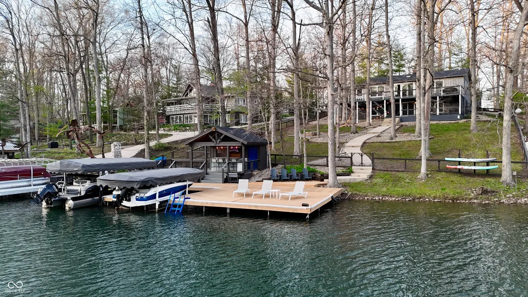 Impressive Oasis on Sweetwater!! This incredible lakefront home boasts 4 bedrooms, 3 full bathrooms (including two ensuite), two living areas, multiple decks, massive dock with two boat slips and dock bar!!! Home was fully updated in 2022, including new LVP flooring throughout, new countertops, cabinet doors and hardware in kitchen and wet bar, fresh paint, all new light fixtures and fans, new vanities in bathrooms and new tile shower in primary bedroom, just to name a few!! The main level of the home features 3 bedrooms and two full bathrooms, gorgeous living area with fireplace, skylight and vaulted ceiling, completely updated kitchen with multiple dining areas, not to mention INCREDIBLE views!!! The full finished basement has a 4th bedroom with attached bathroom, second living space with fireplace, huge wet bar with granite countertops and updated cabinetry, and a MASSIVE bonus room that would be a great for workout area, storage or even additional sleeping space. The outdoor space is truly what makes this home so special. The back of the house features multiple decks, a screened-in patio, large fenced lot with sloping concrete walkway, fire pit and huge dock with trex decking, two boat slips and dock bar!! A large circular paved drive, with parking pad, at the front of the house provides plenty of parking space. There is also a large front lawn with storage shed and second fire pit. This house is completed with a large two car garage. There is truly nothing left to desire with this incredible property!! Open House Sunday, April 27, 2-4pm