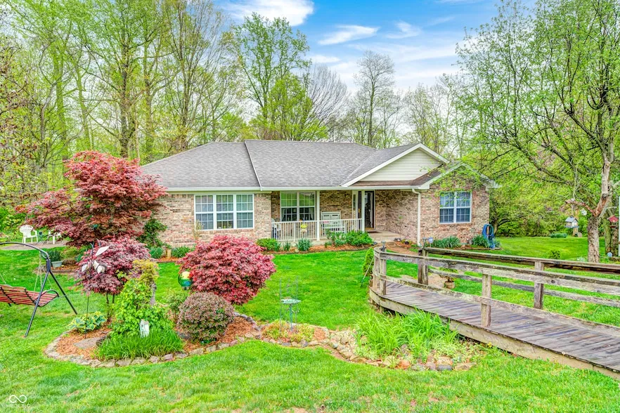 Looking for that special property that meets all your criteria? This might just be the one! ACREAGE: Home is situated on two beautiful, wooded acres which has a small stream running along the back property line. HOA: There is NONE!! It's your property so use it the way you choose. BARN: The Property offers a newer, well-maintained 30'x40' free standing barn. This barn has a concrete floor, 200-amp electric panel, a wall unit A/C unit, and it was designed to have an enclosed 22'x16' isolated area which could be used in a variety of different ways: Office, Workshop, Hobby, Flex Space. Your Choice!! Barn offers multiple ways of entry. There is an individual door entry as well as a garage door entry. If you have multiple vehicles, this is a perfect place to park them inside. GARAGE: Enjoy the over-sized 24'x24' detached garage. It has finished walls, is well insulated, has shelving for storage, and a garage door opener. HOUSE: Let us start by saying this home is immaculate and in mint condition. The one level home offers over 1,800 square feet of well-organized living space. The large, tiled entry opens into the 21'x21' Great Room with a wood beam vaulted ceiling, double light ceiling fans, extra windows, and door to the 20'x16' deck. The large Kitchen sits adjacent to the Breakfast room. The kitchen has a full set of appliances, ample counter space and cabinets, a center island with seating for three, and a large walk-in pantry. Breakfast Room is 18'x10' and will accommodate the largest of dining room sets. There is a smaller private deck and patio off the kitchen for those needed relaxation & quiet times. Secondary Bedrooms are spacious & share a full bath area. Large Primary Bedroom is 16'x15', has double walk-in closets, and a private door to the deck. You will love the deck with views of the surrounding trees and colorful plants, shrubs, and wildlife including birds, squirrels & deer.