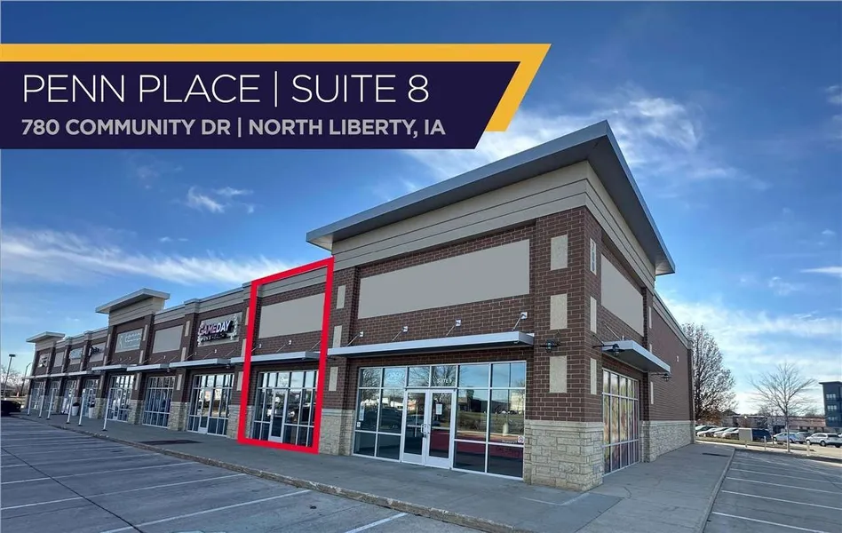 Cushman & Wakefield Iowa Commercial Advisors Exclusively Offers: Penn Place - Suite 8 | 780 Community Dr, North Liberty, IA 52317. Easily convertible for a variety of uses. 1 unisex restroom in place. Large pylon sign visible from Penn St and Highway 965. Prime retail exposure off Penn St in North Liberty. North Liberty is consistently ranked in the top 10 fastest growing cities in Iowa and ranked 2nd in percentage growth in population in 2019. Surrounding retailers include: Walgreens, Dunkin’, Dollar Tree, GreenState Credit Union, McDonald’s, Tin Roost, Field Day Brewing Co, & more. New retail construction in the area including Caribou Coffee and Midwest Veterinary Partners immediately to the east, Starbucks, Jersey Mike’s, Aldi, and Bowl Dogs to the west, and the Palestra sports complex in close proximity. Within minutes of Interstate 380. Contact listing agents for additional details ...