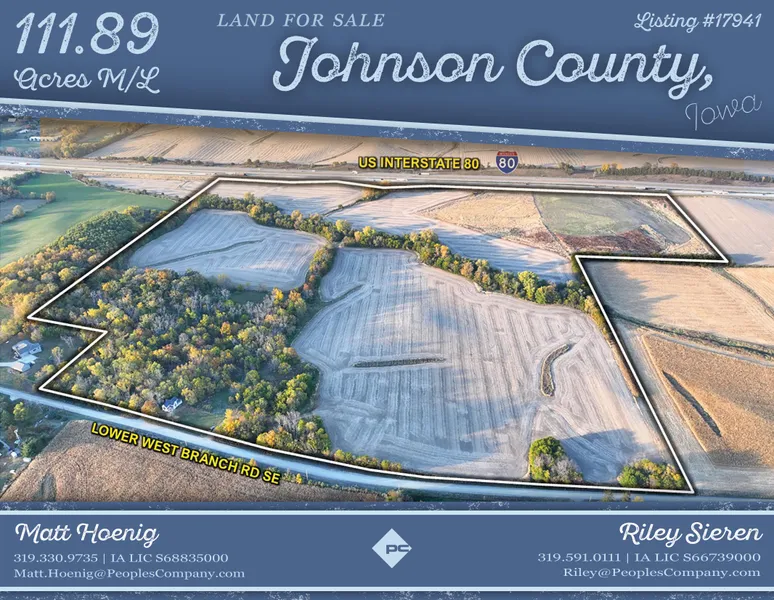 Peoples Company is pleased to welcome you to this quiet retreat just outside of Iowa City, Iowa. Within minutes from the busy streets of Iowa City lies the 111.89-acre combination farm that has been in the same family for over 50 years. It offers many opportunities such as trail systems, wildlife, and a premier building site opportunity with income-producing row crop acres. Please reach out to the listing agents to schedule a showing. Don't miss this opportunity to own a premier property with country living & city amenities.