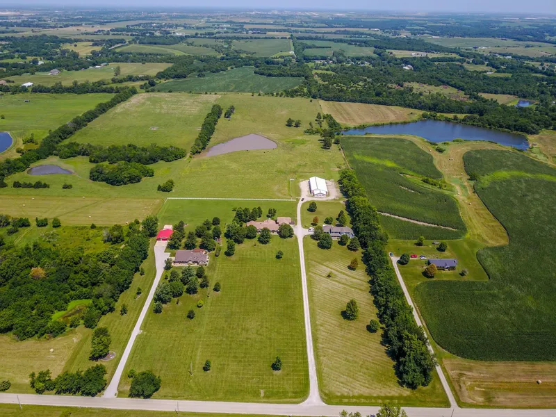 Located on the Johnson/Miami county line minutes North of Hillsdale Lake, this beautiful ranch style home will take your breath away. Situated on 32 pastured acres with a nice 3 acre stocked pond, the land is fully fenced and ready for cattle or horses. The shop is 120’x55’ including a leanto on the East side. It includes 5 large garage doors, concrete floors, electricity, and water right outside. There is an an additional 25’x40’ shop/garage with three garage doors attached on the North side. This shop would make for an incredible boat storage facility, stable, car collection, operating business, all with the potential for office space.