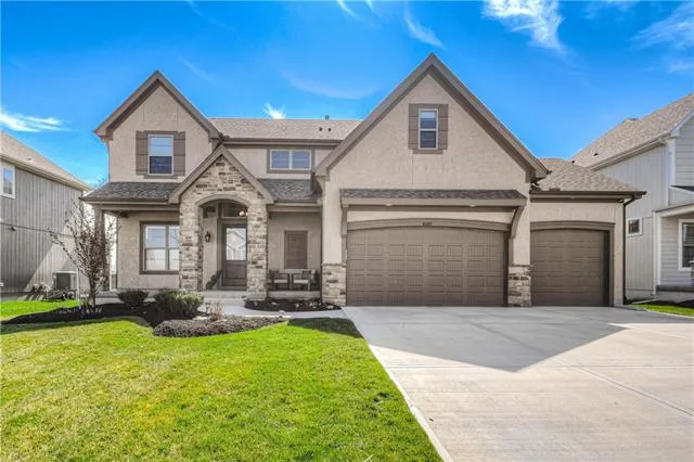 Be amazed walking into your better than new Bickimer 2 story Fillmore EX, less than 3 years old with upgrades galore! Sun drenched windows light up the open concept floor plan. Great room features built-ins with beautiful stone fireplace. Perfect 1st floor for your parents/nanny bedroom/bath suite and for you with separate office/flex room. Upgraded hickory hardwood floors throughout the main floor give it that rich look and feel! Your inner chef will soar creating culinary treasures while enjoying the many special cabinet upgrades, exceptional walk-in pantry, gas cooktop with high powered hood, quartz counters, and SS Appliances. Gather the family to enjoy them on the huge island! 3 bedrooms, 3 baths on 2nd floor plus expansive bonus media room/loft. Relax in your ownerGs suite, a peaceful oasis with spa like bathroom & huge walk-in closet. Laundry off of ownerGs suite. Finished daylight basement with rec room, wet bar, 5th bedroom or second office/bath, egress windows, and fun play area. Google Fiber, zoned HVAC and energy efficient features! Seller including newer refrigerator & washer/dryer too. Level lot with covered patio that backs to green space. Neighborhood pool, play area, and clubhouse. Enjoy all the amenities the Bluhawk community destination provides now and in near future, shopping, restaurants, entertainment, sports park, healthcare providers, award winning Blue Valley Schools, and highway all close by. Welcome to your new home!