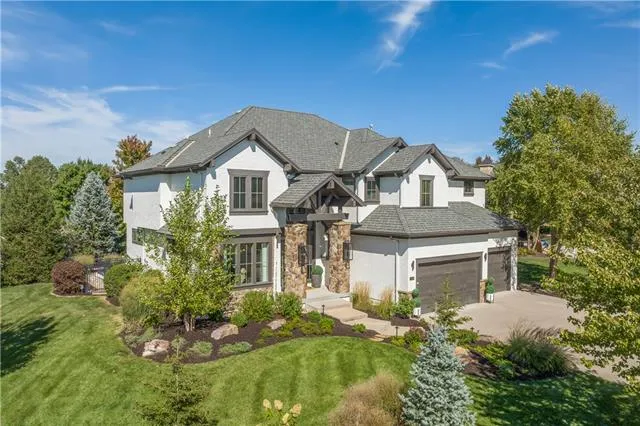 Stunning two story in pristine condition with three finished levels of luxurious living. Virtually every surface has been professionally redone with designer touches throughout. Secluded cul-de-sac lot in the highly sought after Mills Farm development. Constructed by Starr Homes. Walk into a gracious entry with a view toward the greatroom and large windows into the backyard. Open main level plan with large kitchen island opening to a covered patio. Enjoy sitting by the stone fireplace in the greatroom or the outdoor patio fireplace with retractable screens. A very versatile floorplan. Dining room is currently functioning as a sitting room just off the entry. A private office is tucked away at the back of the home behind the stone fireplace. Upstairs features a beautiful master bedroom suite and three other large bedrooms. Laundry and coffee bar located just off master bedroom. Finished lower level is perfect for entertaining or just getting away. Large walk behind bar, glass wine cellar and plenty of daylight from the walkout/walkup back stairs. 5th non-conforming bedroom and movie theatre make this lower level a very comfortable spot. Walk to highly rated Blue Valley elementary school. Shopping, highway access, Blue Valley Recreation, Deanna Rose Children's Farmstead just a short drive away.