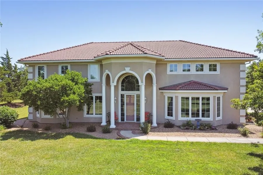 SELLER says bring ALL OFFERS it's TIME TO SELL, 10 acs Oasis. New windows, heated tile floors, custom kitchen cabinets w/island. Kitchen melds directly into dining room w/ the same cabinets including built-ins encasing the great room TV. A butler's pantry is adjacent to the kitchen! An additional 2nd floor master w/ bathroom; an adjacent room could be easily repurposed w/ a sitting room & kitchenette to create a large master suite. The home sports 3 heating systems; floor heat, a propane furnace, & a heat pump. 2 of the upstairs bedrooms have an entry way that has separate heating, cooling, & hot water heater that can be closed off if not in use. Instant hot water to all faucets is provided by a recirculating pump. All interior & exterior walls are 6" thick making the home extremely quiet. The stucco facade has color mixed in, providing permanent color. The tile roof is rated at 50+ yrs. The 1 acre pond is 16 ft. at it deepest to keep the fish alive all winter. The pond is stocked with Bass, Channel cat, Blue gill, Hybrid Blue gill and Red eared rock crushers. The pond is spring fed, very clear & well maintained. The home took 2 yrs to complete, finished in 2001. The back 1/3 of the property is seeded in brougham. Too many other details to reveal, it's a MUST SEE! CAR ENTHUSIAST DREAM space for more than 20 cars under one roof. Keep your collection & work space close to you. Paint booth, engine hoist, & special work room in a 60 x 100 heated & air conditioned shop(all have concrete floors) with 3 separate sections. There are 4 overhead doors along the south side. Garage/shop has a double 8' doors, two 16' doors, & on the end a double 12' door. The garage on the end has a spacious shop on the 2nd floor approx 1200 sq. ft. 2 garages have finished sheet rocked walls. The 2nd bay has space to park a full size RV w/sewer dump & 50 amp service. In addition, 2-50 amp service & dump for guest on the outside pad. Multiple doors provide accessibility to the 100 ft. long shop.