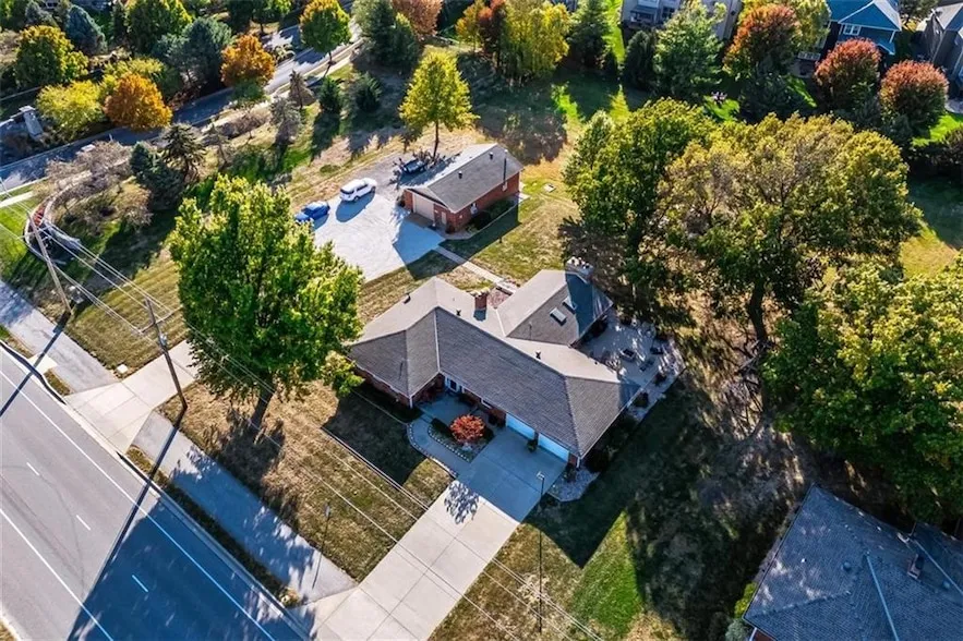 What would you build? A brand new home in this amazing location? Or do you want a compound with two homes? Does NOT having an HOA sound good? Those opportunities are all available with this unique 1+ acre property in Overland Park and in the nationally ranked Blue Valley School District. The current home is livable and well-maintained and features a huge family room with large fireplace and built-in smoker. Build a fire every morning in this huge fireplace when it's cold and you don't even need to turn on your furnace. Also included is a separate, large, all brick garage/shop area! There is so much potential here - this could be a blank canvas and the perfect spot for you. Currently on septic, but city sewer hookup is available onsite. Close to shopping, restaurants, and the exciting BluHawk Development. Overland Park is ranked 6th in the country of Best Places to Live. Why not build your dream home here?