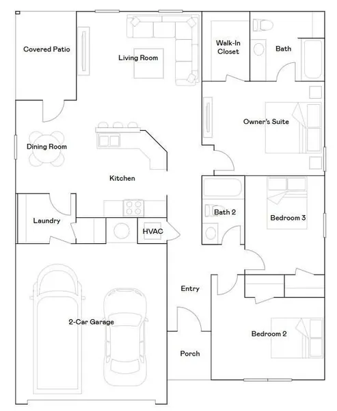 Welcome to the Foster II floor plan — a beautifully designed 3-bedroom, 2-bath home offering the ease of single-level living. This home features a 2-car garage, a covered back patio, and modern conveniences perfect for comfortable everyday living. As you enter through the front door, you're welcomed by a foyer that leads to two spacious secondary bedrooms and a full bathroom conveniently located just outside their doors. The primary suite is generously sized and includes a private bathroom with a double bowl vanity, a walk-in shower, and a large walk-in closet. The heart of the home is the open-concept kitchen, which features a C-shaped island with bar seating, perfect for entertaining or casual meals, overlooking the living room. The kitchen flows seamlessly into the dining area and out to the covered back patio — ideal for outdoor relaxation.