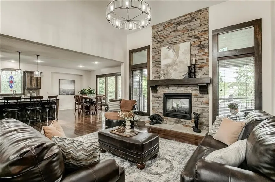 Stunning Don Julian 1.5 Story in a Beautiful Subdivision! This move-in ready home offers space, style, and upgrades—without the wait of new construction. Open floor plan with see-through fireplace to covered deck, large main-floor primary suite with huge closet and connected laundry. Fresh interior paint, new stair carpet, new dishwasher, and a 1-year-old roof! Upstairs features a 2nd primary suite, and 2 more bedrooms. The walkout/walk-up basement boasts a stylish wet bar, 5th bedroom, craft room, exercise room or a non-conforming 6th bedroom and access to a fenced yard with covered porch and patio complete with a fire pit! Enjoy 70 acres of green space with trails connecting to JOCO’s trail system—plus Heritage Park’s golf, lake, dog park & more nearby. This home has the features new builds miss—at a better value! Choose Blue Valley, Spring Hill or Olathe schools and seek a nonresident transfer!