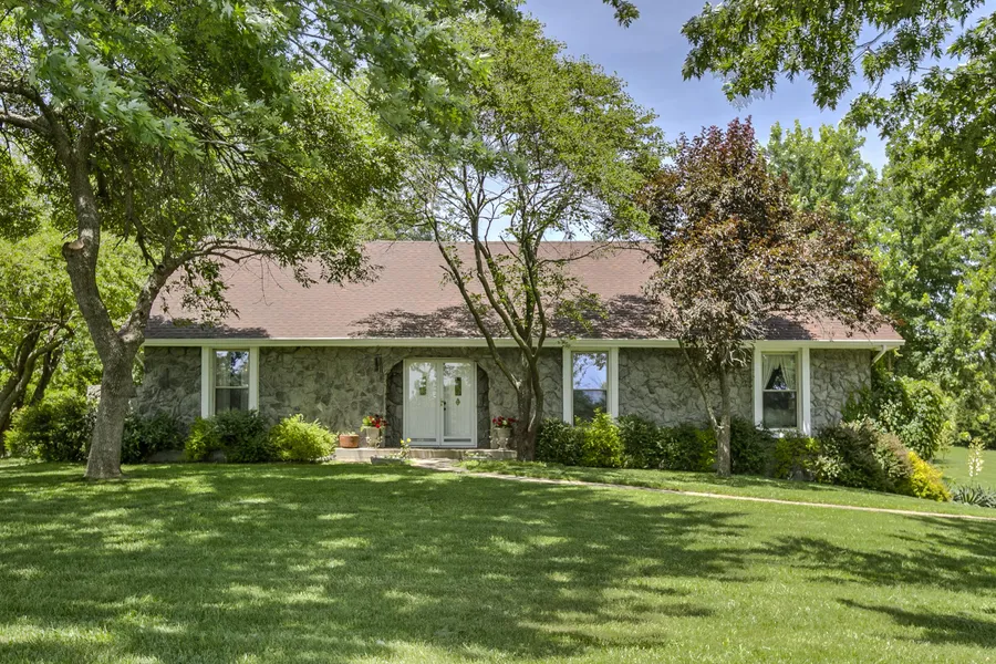 COUNTRY LIVING WITH CHARM! Just six miles west of Olathe you enter a private community tucked back in a country setting with only 17 neighbors surrounding a three acre lake. Swim or fish in the lake, enjoy the sand beach, tennis & play area. This well maintained home offers lots of living space, finished basement, fabulous large vaulted sun room and wrap around deck. Master suite and two bedrooms on main level with bonus room or 4th bedroom suite on 2nd level. Beautiful hardwoods and tile. New paint & fixtures.