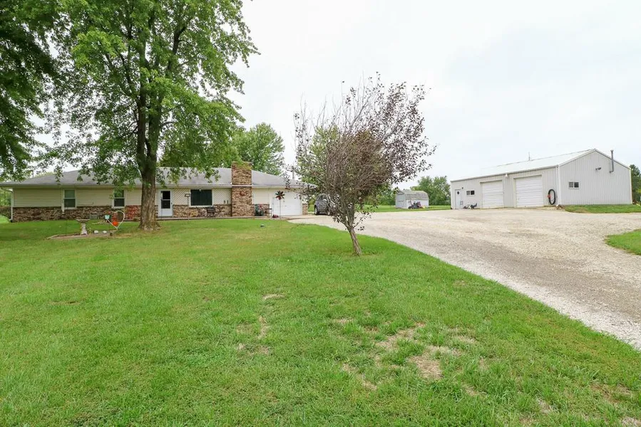 Don't miss this 3 bedroom 2 bath Ranch home on 10 acres m/l & on blacktop road! Kitchen Island & tile entry. Family room with fireplace & insert. Backup wood heat in 2 car attached garage. 28' X 40' 2 Car detached garage with concrete floor, electric & RV/camper hookup. Additional barn with 3 stalls & fenced for livestock. Minutes from town.