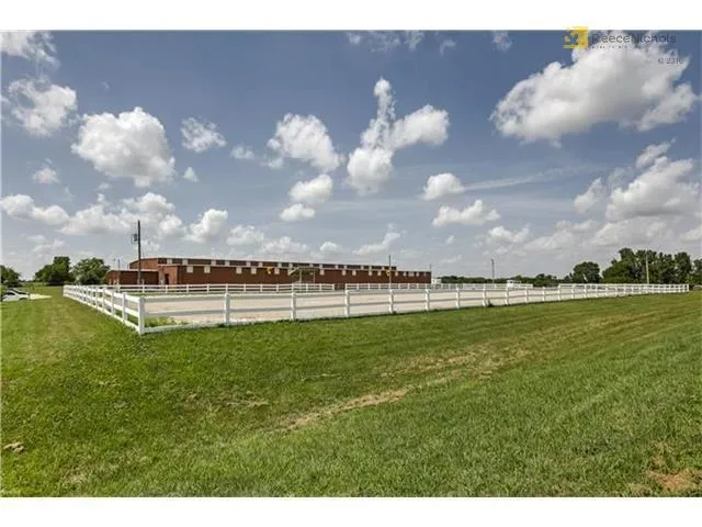PRIME Johnson County horse property! Corner 40 acres sits high and includes 200' x 100' steel-framed indoor riding arena with 26 stalls, heated lounge, office, bathroom, 16 stall barn, outdoor arena, storage barn for tractor and hay, multiple turn-out lots and pasture, small pond, two story house completely remodeled in 2010, separate living quarters for barn manager, separate entrance for house and barn. House features new roof, windows, HVAC, kitchen, appliances, large mud room, fenced yard. Great investment! Surrounded by upper bracket homes and horse properties. Blue Valley schools.
