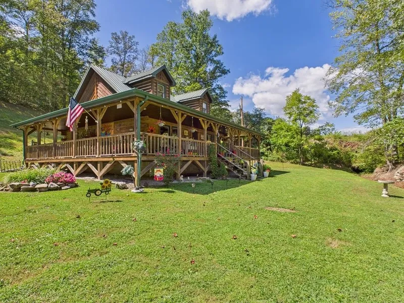 Charming log home in Flatgap, KY! This 2-bedroom home features a loft that can easily convert to a 3rd bedroom, hardwood floors throughout, and stunning woodwork inside and out. Nestled on just over 1 acre in a private country setting, you will enjoy a seasonal waterfall, detached garage, and extra outbuilding. A beautiful retreat to call home!