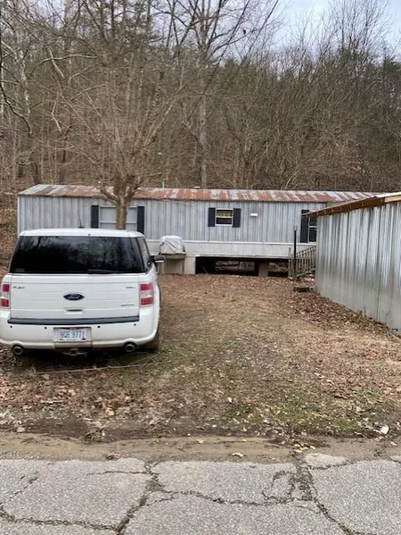 Land with trailer that is in need of repairs. Garage with concrete floor and storage building, included in sale.