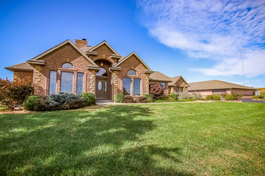This magnificent executive estate home is located right off of 23 Highway, conveniently between I-70 and 50 Highway. From the road, it is nearly impossible to keep your attention from being drawn to the gorgeous, no maintenance, all brick reverse 1.5 story home sitting atop the hill. A well manicured, tree lined, paved driveway winds to the 4,000 square foot 4 bed, 3 bath home. An elegant entranceway will take you past the office into the main living space with a fireplace and entrance onto the back patio. Off of the master bed, a raised deck provides an incredible view of the expansive pasture behind the home. The kitchen is home to granite countertops, hardwood floors, and Jenn-Air appliances including dishwasher, refrigerator/freezer, range, hood, microwave, and oven/grill and griddle. A partially finished basement has a cozy living space, in addition to a bedroom, as well as plenty of unfinished space for storage. The living space in the basement has a wood burning fireplace, with blowers, that are piped to heat the upstairs as well. There is a garage door entrance into the basement for ease of access to equipment. The home utilizes an all electric ground source heating and cooling system coupled with a deep well and reverse osmosis water system. One of the most impressive features of this estate is the roughly 5,600 square foot detached garage/shop. It is equipped with living space including a kitchen, bedroom, and living area. From there you will enter into a large shop portion, which connects to a show room, with laminate flooring, perfect for storing cars, boats, or equipment. The detached garage utilizes its own heating and cooling system which, like the house, is ground source. No expense was spared in the construction of the home and detached garage. Don't miss this opportunity! For any additional questions or to schedule a private showing, contact Joey Purpura at 913.424.8415.
