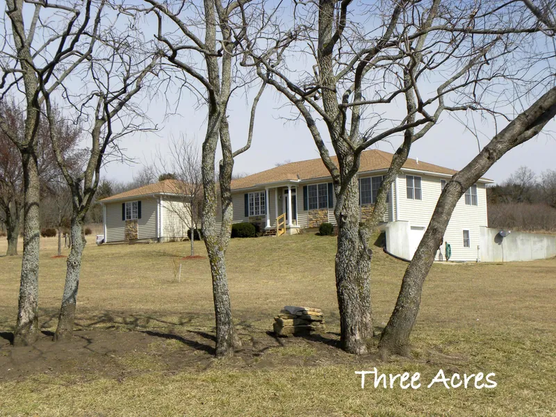 Custom, quality built one-owner home, hilltop setting with lake view, large 2,053 square foot ranch with custom cabinets and island with gas cook-top, corian counter-tops, pull-outs, 20x21 living room with stone wood-burning fireplace, formal dining area, laminate wood flooring, laundry room off kitchen with pantry area, lots of windows for light and bright setting, full-stubbed walkout basement currently set up for workshop/utility garage, 20x16 partially covered deck, 24x24 detached garage with concrete floor, 16x15 patio off kitchen and garage.