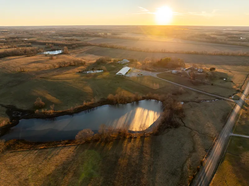 Two homes are on the 60 acres, an older home that could use some TLC to get back to livable condition would make a great home for a family member or even another AirBnB or additional rental space for someone renting the event center. The other home was built in 2008 and has 1,790 square feet finished. The ranch-style home is very fitting for the property and even boasts a nice walkout basement. The farm surrounding the event center consists of many acres of grass used for grazing horses and cattle. Many barns on the property allow for shelter for hay and livestock. Automatic waterers are in many of the pens and even the newest barn on the property. Well water is on the entire property. A 4 acre lake that is in the pasture below the barn provides some picturesque views and is even stocked with blue gill, bass, and catfish.
