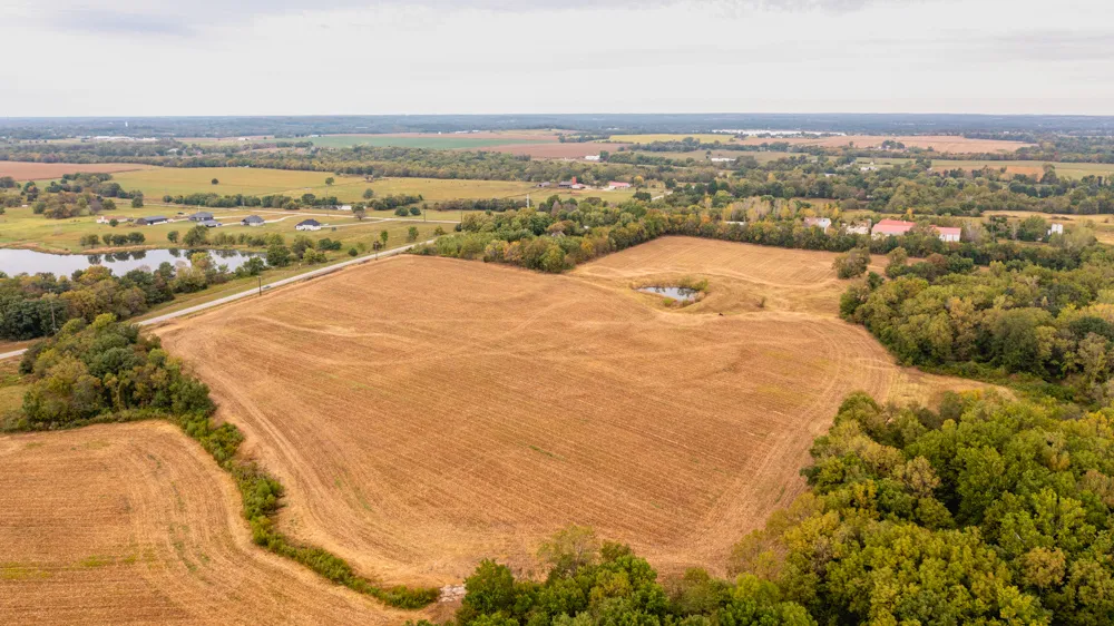 A scenic hilltop build site overlooks the property, making it a perfect location for a dream home or barndominium with a view. Nearly 25 +/- acres of productive tillable ground provide income potential with hunting and recreational opportunities as well. West Pin Oak Creek winds through the property for over 600 yards, bordered by hardwood timber that provides excellent habitat for deer and turkey. A small pond adds another water source and extra charm.