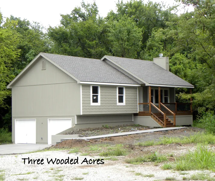 New, with builder warranty, covered front porch with home nestled in the woods, very open floor plan, tile and granite in the kitchen, wood-burning fireplace in vaulted living room, walk-in closet in master, private deck with stairs down off dining area, walkout basement is stubbed for full bathroom and ready to be finished for family room, oversized 2-car garage.
