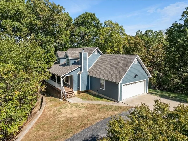 Grab the fishing poles and a cold drink! Completely remodeled (summer 2025) 4 bedroom 3.5 Bathroom home located on 2.18 wooded acres with a deep stocked pond. Tucked away in the trees this house features a new roof, new upgraded Hardie board maintenance free siding, and a brand new HVAC system. Peace & quiet while watching the wildlife from the 30 foot long covered front porch or the brand new rear deck. Did we mention the home is on a dead end road that happens to be 50 yards away from the subdivision lake?? Also fully stocked! Inside, warm up by the wood burning fireplace while enjoying the open floor plan with all new paint and flooring throughout. The kitchen offers granite countertops, stainless steel appliances, and a brand new 3.5 x 8.5 Sqft pantry. The oversized master suite offers private wooded views, new carpet & paint, master bathroom with new tile shower & double vanity. The WALK-IN MASTER CLOSET.. IT IS HUGE! You have to see it to believe it! Upstairs, two more bedrooms and a full bath that have also been freshly painted. The finished walkout basement includes a large family room, bedroom number four and another full bath with all New paint and carpet. If you are looking for a private updated home on a little bit of land on a dead end road... THIS IS IT!! Located in the desired Lake Michael subdivision which offers equal distance between Warrensburg & Knob Noster (Short scenic drive to Whiteman AFB) Blacktop entire way to home & minutes from the spirit trail that runs along DD highway, perfect for walking, running, or biking. New Garage door is on order and will be installed prior to closing.