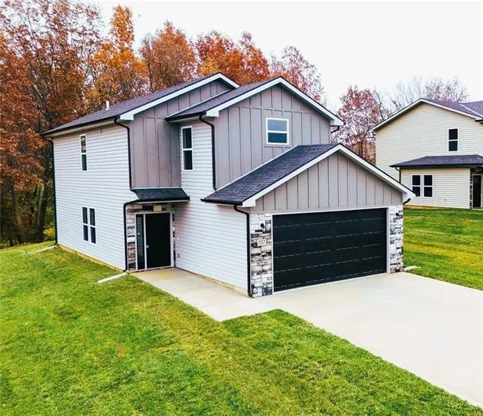 This beautiful 3-bedroom, 2.5-bathroom new construction home showcases a sleek modern design and a well-equipped kitchen featuring a large island with quartz countertops, stainless steel appliances and a spacious walk-in pantry. The main ensuite includes vaulted ceilings, a generous walk-in closet with built-in shelving, and a stylish attached primary bath. Enjoy convenient ground-level access to the rear patio and fully landscaped yard-perfect for pets, entertaining, and family activities. Spacious two-car garage offering plenty of room for parking and storage. Home is currently under construction; pictures are of a completed build and similar floor plan. Finishes and colors may vary. Estimated completion date is Nov 15.